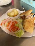Luscious tuna garnished with sliced onions, ripe tomatoes, olives, carrots, sweet & hot peppers on a bed of crisp lettuce.